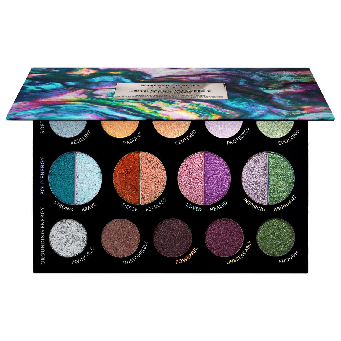 An 18-shade eye and face pigment palette containing 7 brilliant finishes in easy-to-use color-shifting combinations.