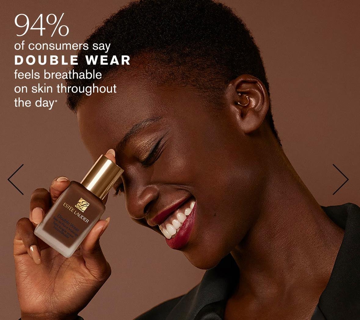Double Wear foundation’s mattifying, oil-control formula promises even skin that always looks fresh, never shiny. It stays in place all day, and resists heat, humidity, and exertion.