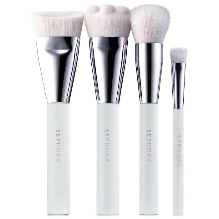 The set includes brushes for gentle facial cleansing, mask application, moisturizing, and treatment.